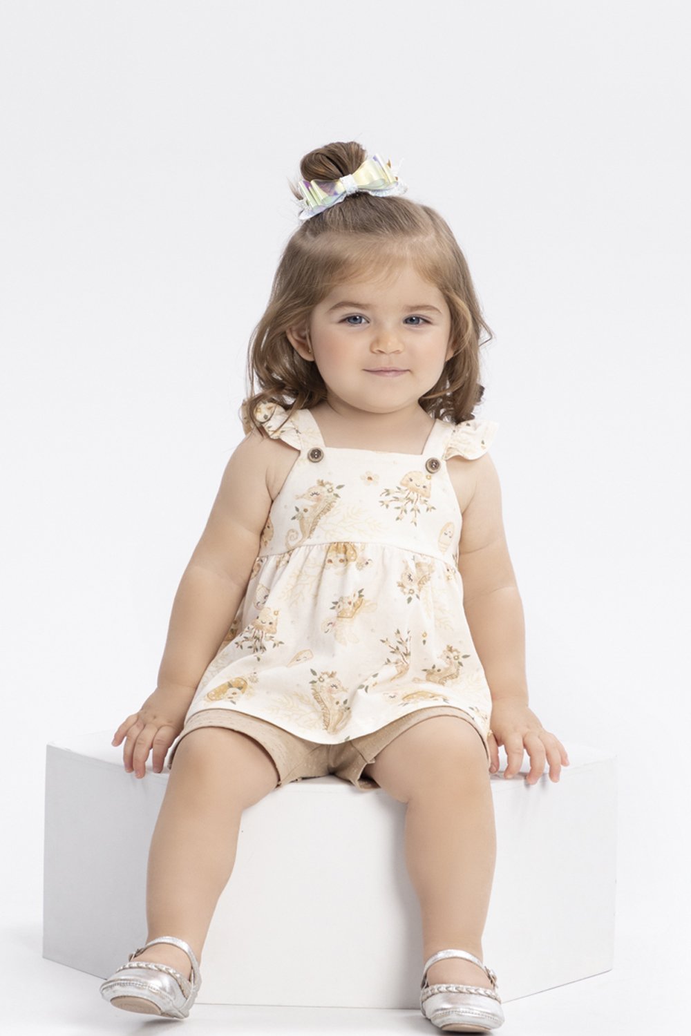 Conjunto bebê feminino com blusa em meia malha penteada e short em malha nikko.