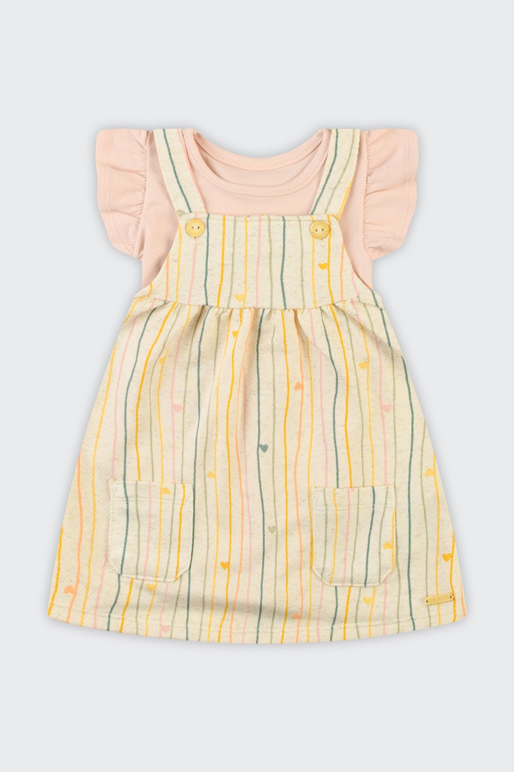 Conjunto bebê feminino com body em cotton leve e salopete em moletom eco linho.