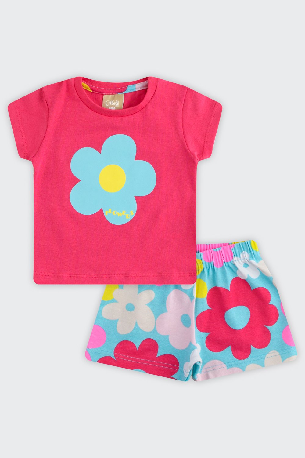 Conjunto Bebê Menina em Cotton Flowers Ollelê Rosa