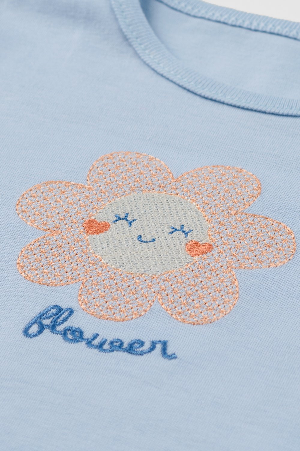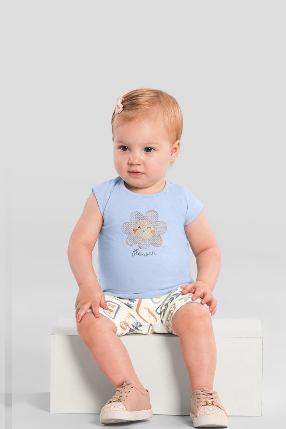 Conjunto bebê feminino com blusa em meia malha e bermuda ciclista em cotton.