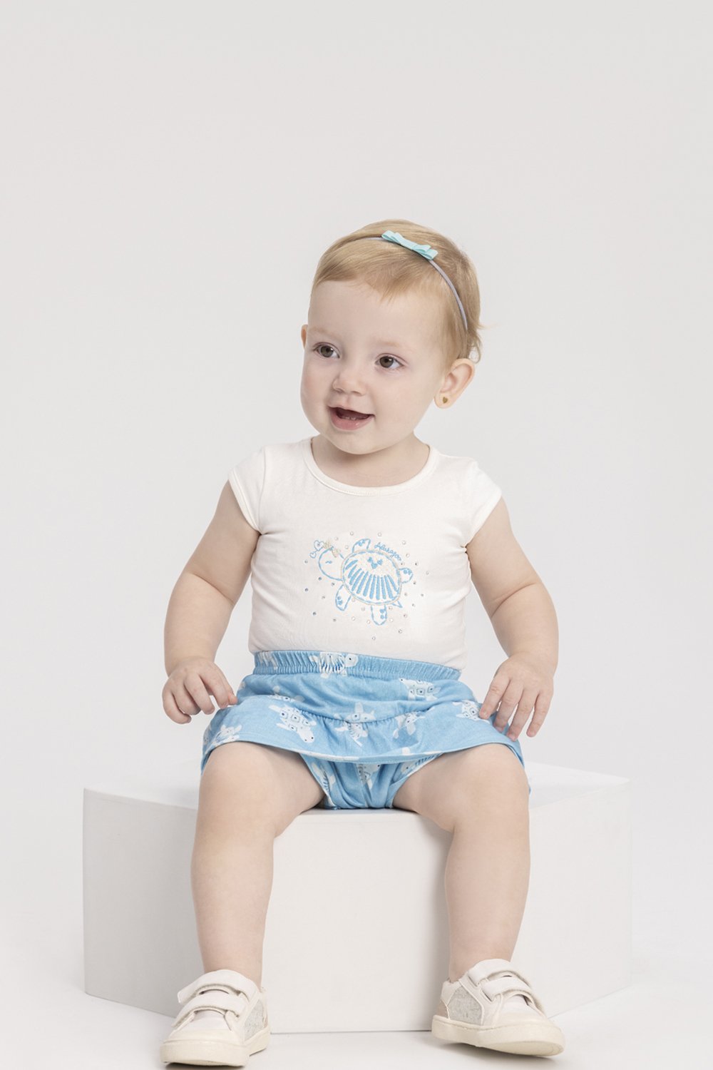 Conjunto bebê feminino com blusa em malha cotton soft e short em meia malha penteada.