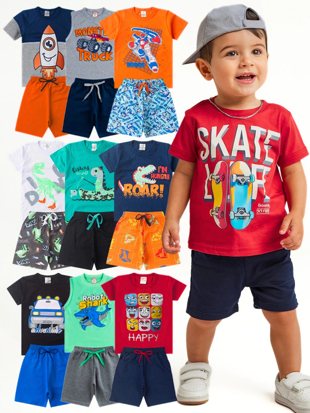 5 Camisetas + 5 Bermudas - Kit 5 Conjuntos de Roupa Verão Masculino Bebê: