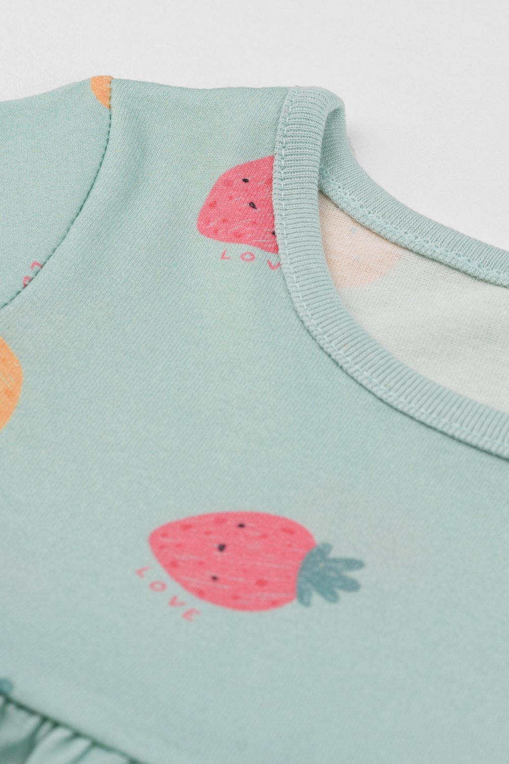 Vestido bebê feminino em meia malha estampada.